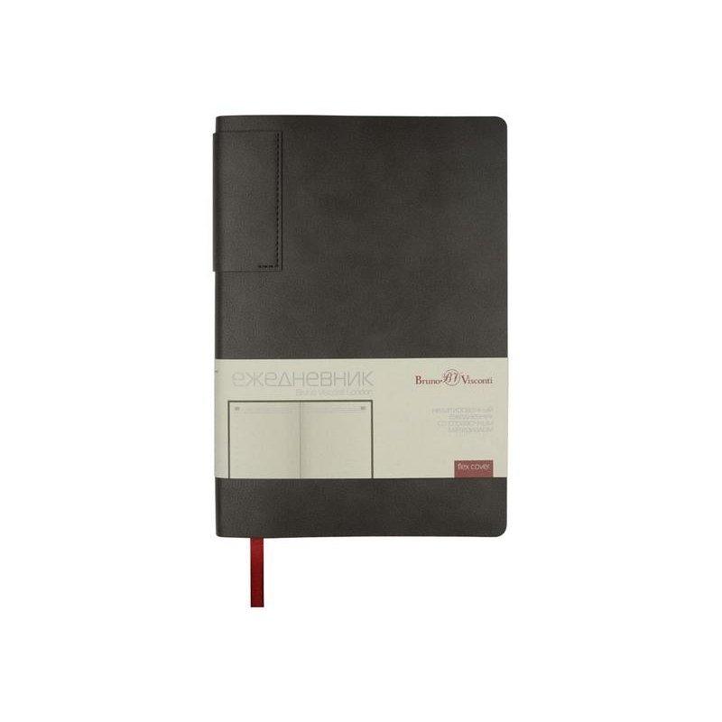 Лаконичная модель в ярком исполнении: гибкая обложка серого цвета с контрастной или в цвет обложки нашивкой. Выполнен из качественной и прочной искусственной кожи, крепление внутреннего блока - книжный переплет, закладка- ляссе. Углы обложки скруглены.