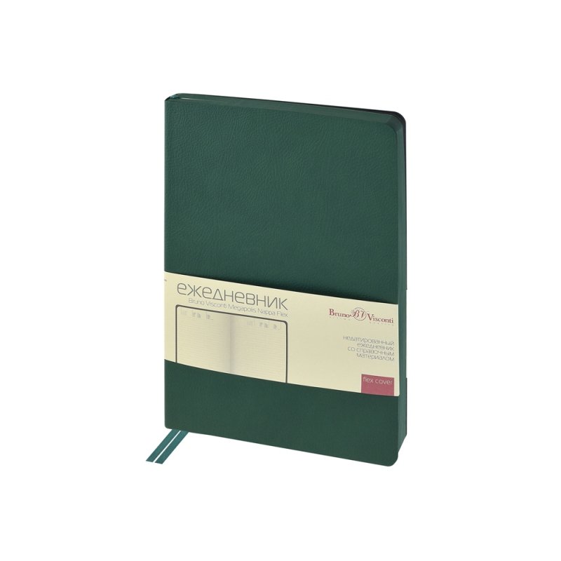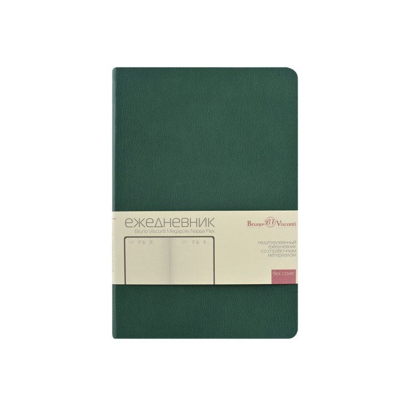 Обложка недатированного ежедневника Megapolis Nappa Flex ТМ Bruno Viscontiпроизведенаиз искусственной кожи без применения переплетного картона, благодаря чему он легче и изящнее классических. Его можно свернуть в трубочку, обложка и блок не пострадают. При этом, для ежедневника формата А5 доступны те же опции, что и для любых других ежедневников — окрашенный обрез, крупнозернистая фактура искусственной кожи обложки, двойное ляссе 7 мм.