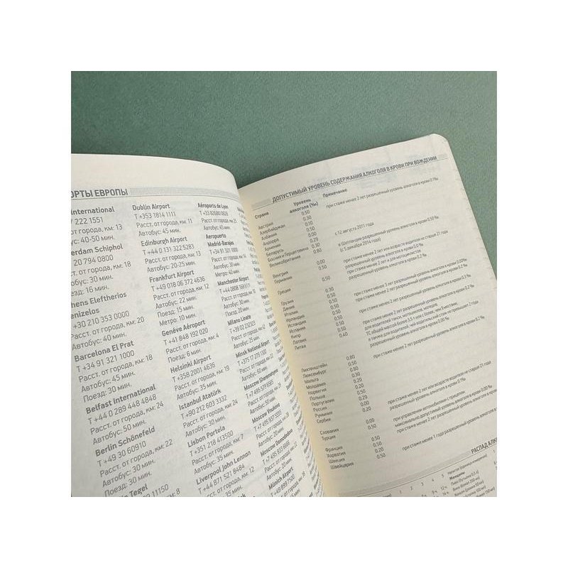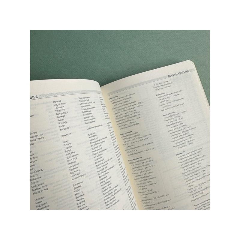 •справочная информация на 19 страницах (аэропорты Европы, штрихкоды, международные телефонные коды, цифровые автомобильные коды, энергетическая и питательная ценность продуктов, национальные и религиозные праздники, единицы измерения, страны мира, размеры одежды, форматы бумаги и др.);