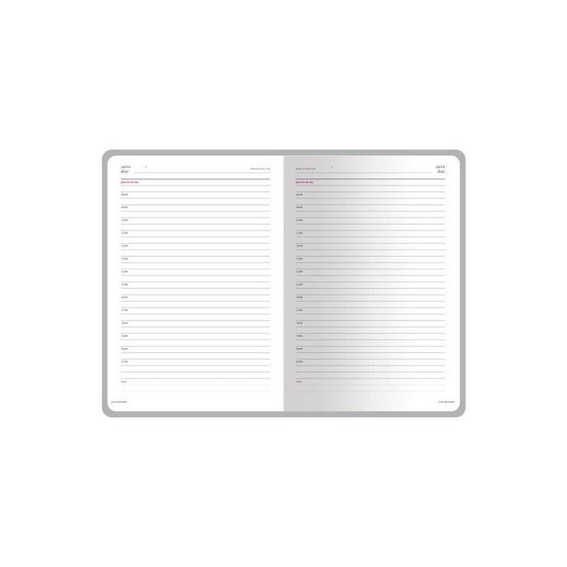 В ежедневнике Sidney Nebraska есть полезная справочная информация и телефонная книга на 18 листов, а также 272 страницы для записи идей, мыслей и составления рабочих планов. Для изготовления страниц используется качественный белый офсет повышенной плотности (70 г/кв м) с золотым срезом, который производится в Японии и подходит для всех видов чернил. Разметка блока с указанием времени позволяет планировать дела с точностью до 1 часа.