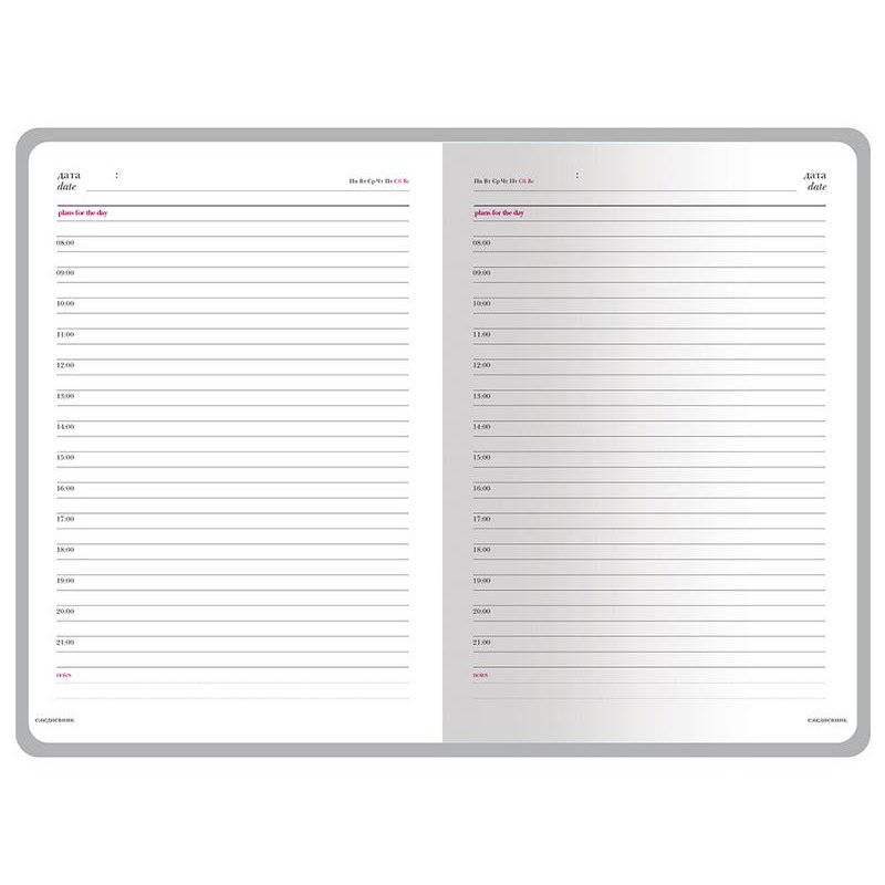 Недатированные страницы в серую линейку имеют отдельное место для проставления числа месяца и дня недели. Справочный блок на 14 страницах содержит полезную информацию из различных областей.