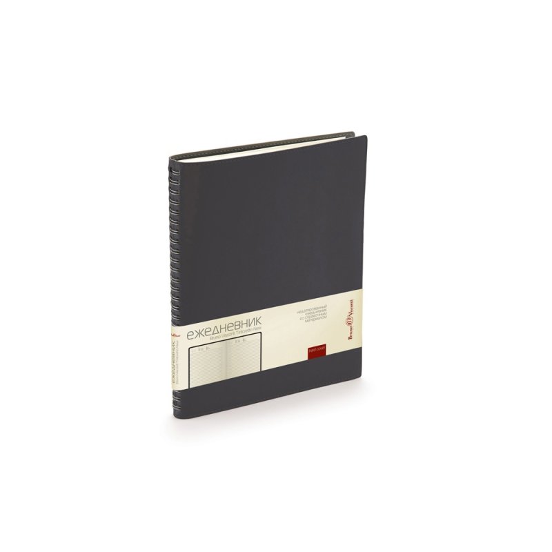 Недатированные деловой ежедневник Tintoretto. Реальный шов по периметру в цвет материала Гибкий мягкий материал обложки прекрасно подходит для нанесения тиснения. Ежедневники выпускаются в формате В5, его размеры составляют 185 х 230 мм. Блок - 136 листов соединен полускрытым металлическим гребнем. Для блока используется высококачественная бежевая бумага, обладающая плотностью 70 грамм. В начале ежедневника расположены страницы со справочным материалом.