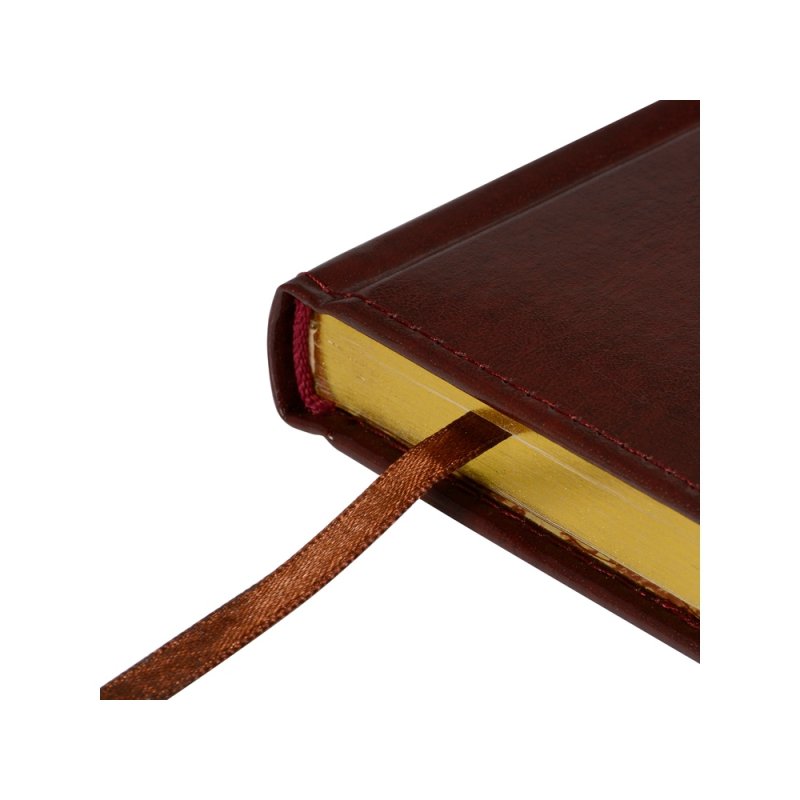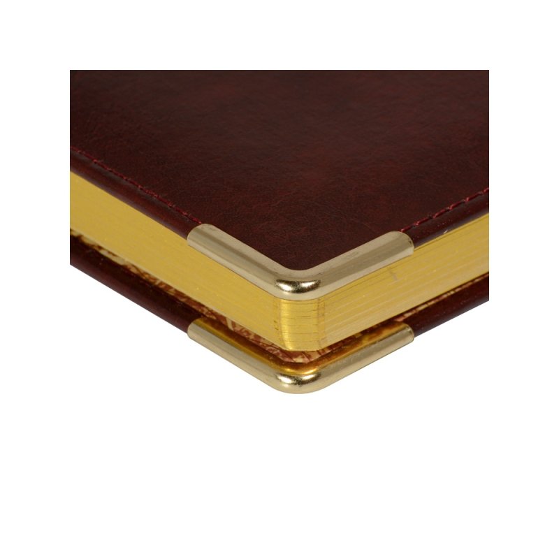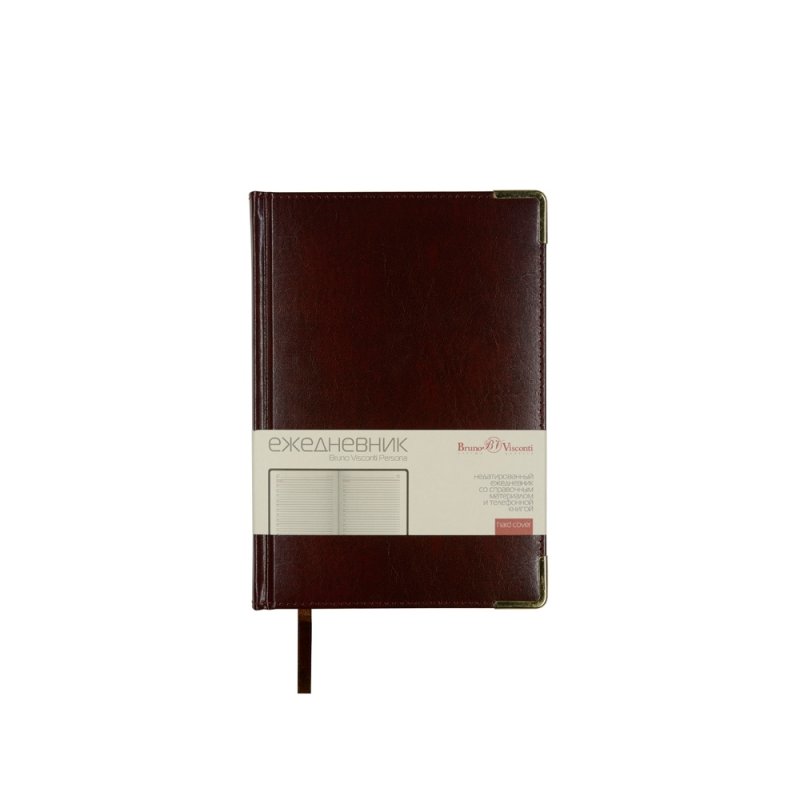Ежедневник Persona – идеальный баланс между практичностью и статусностью. Великолепный переплетный материал прошит тонкой шелковой нитью в цвет обложки. Благородство в облик ежедневника добавляют металлические уголки и золотой обрез. На контрасте с темным цветом обложки, блок состоит из листов бежевого цвета плотностью 70 г/кв.м. Раздел планирования дополнен справочной информацией на 14 страницах и телефонной книгой на 19 страницах. Вечная и никогда не стареющая классика!