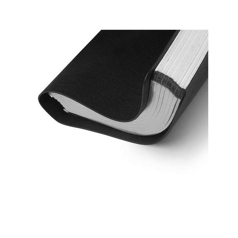 Гибкая (flex) обложка из фактурной высококачественной экокожи, скругленный угол обложки и блока, полускрытый гребень, позволяющий держать ежедневник открытым на столе и работать с комфортом, делая записи, серебряный обрез - все это визитная карточка ежедневника ORBIT от Bruno Visconti.
