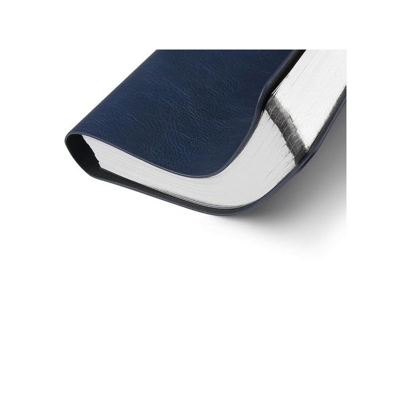Гибкая (flex) обложка из фактурной высококачественной экокожи, скругленный угол обложки и блока, полускрытый гребень, позволяющий держать ежедневник открытым на столе и работать с комфортом, делая записи, серебряный обрез - все это визитная карточка ежедневника ORBIT от Bruno Visconti.