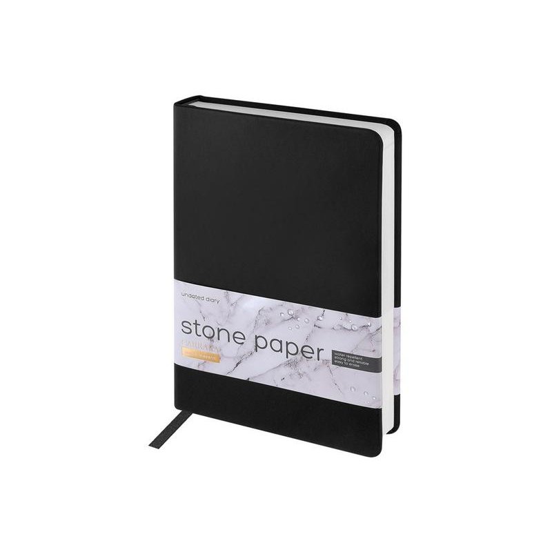 Уникальность недатированного ежедневника Carrara от Bruno Visconti — в его блоке. Он изготовлен из каменной бумаги плотностью 144 г/кв.м, отличающейся особой гладкостью и повышенной прочностью. Она не боится воды и пролитого кофе, достаточно просто протереть сухой салфеткой.
