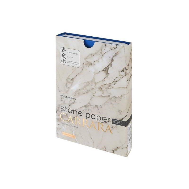Уникальность недатированного ежедневника Carrara от Bruno Visconti — в его блоке. Он изготовлен из каменной бумаги плотностью 144 г/кв.м, отличающейся особой гладкостью и повышенной прочностью. Она не боится воды и пролитого кофе, достаточно просто протереть сухой салфеткой.