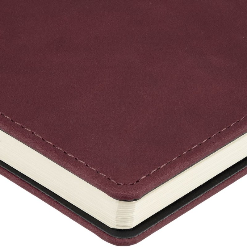 Ежедневник с блоком на пружине в твердой обложке, выполнен из материалов Nubuk Touch, винный SS и Soft Touch, черный AA.