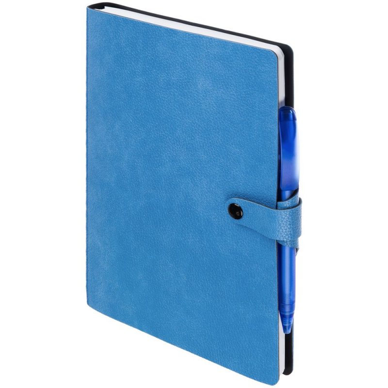 Ежедневник с гибкой обложкой, выполнен из материалов La Fite, голубой JJ и Waltz черный АА.
