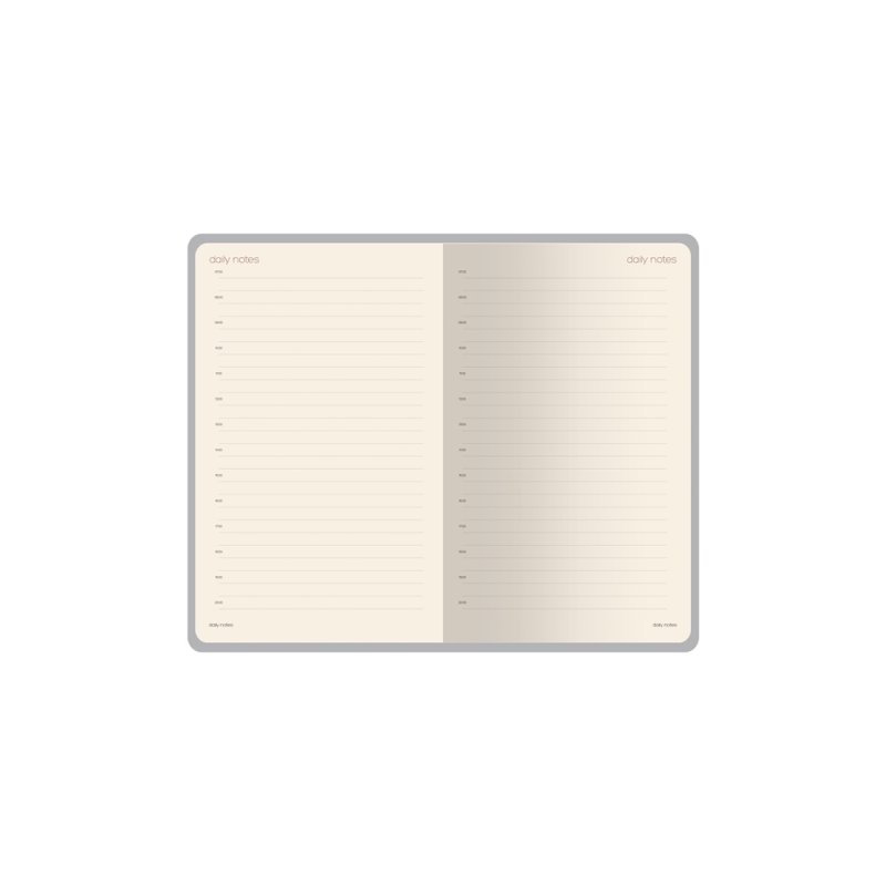 - раздел для планирования имеет линовку серого цвета с указанием времени (интервалы в один час) и выполнен из бежевой бумаги плотностью 70 г/кв.м;
