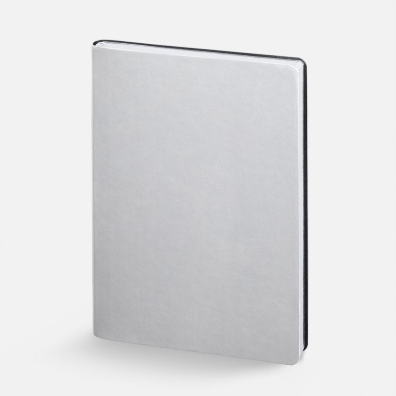 Ежедневник с гибкой обложкой, выполнен из материала Waltz, серебро DD, дополнен ляссе в цвет обложки.