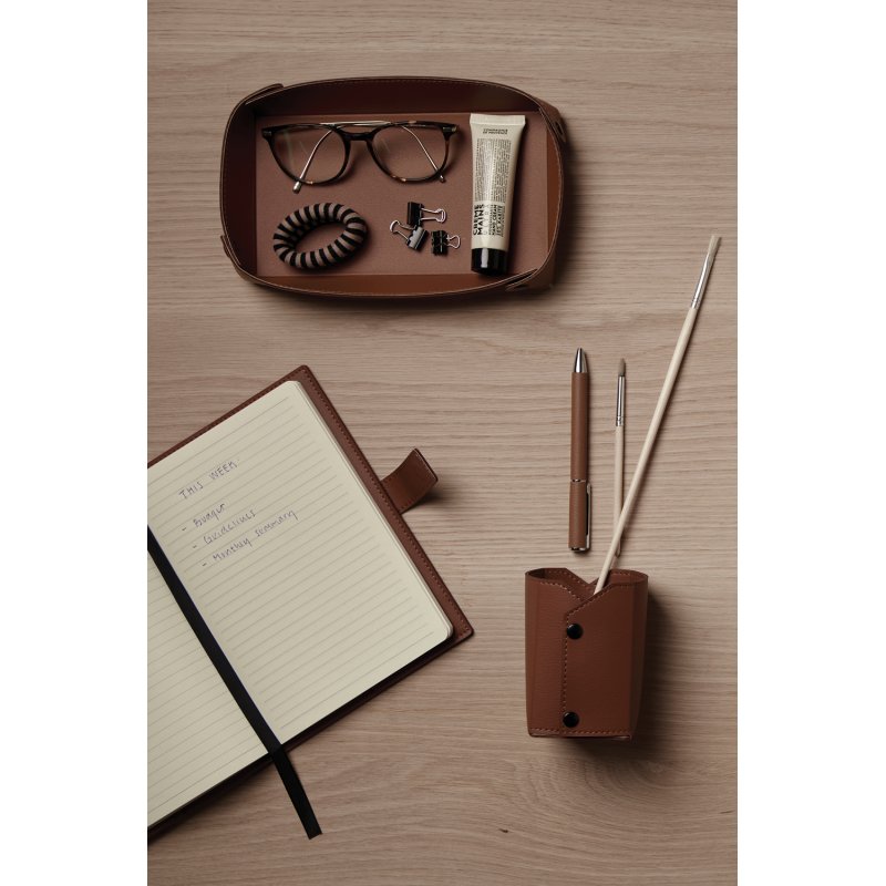Органайзер (складная подставка) из коллекции Timo — идеальное сочетание практичности и элегантности. Сдержанные цвета и лаконичный скандинавский дизайн делают его подходящим к любому интерьеру квартиры или офиса. Органайзер поможет поддерживать порядок на рабочем столе: в него можно положить те мелочи, которым обычно не находится места. Строчка по периметру выступает в роли дополнительного декора и делает органайзер еще более долговечным и прочным. Изготовлен из переработанных пластиковых бутылок и полиуретана. Сертифицирован RCS. Эта сертификация полностью контролирует путь поставок переработанных материалов и гарантирует их наличие в изделии.