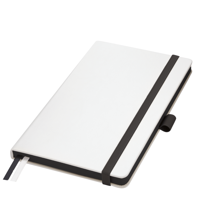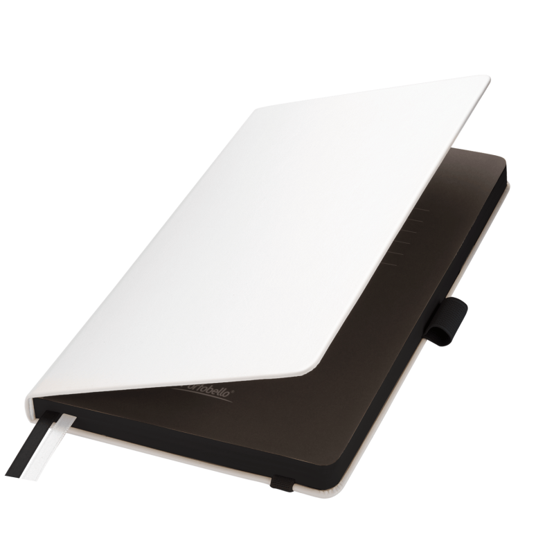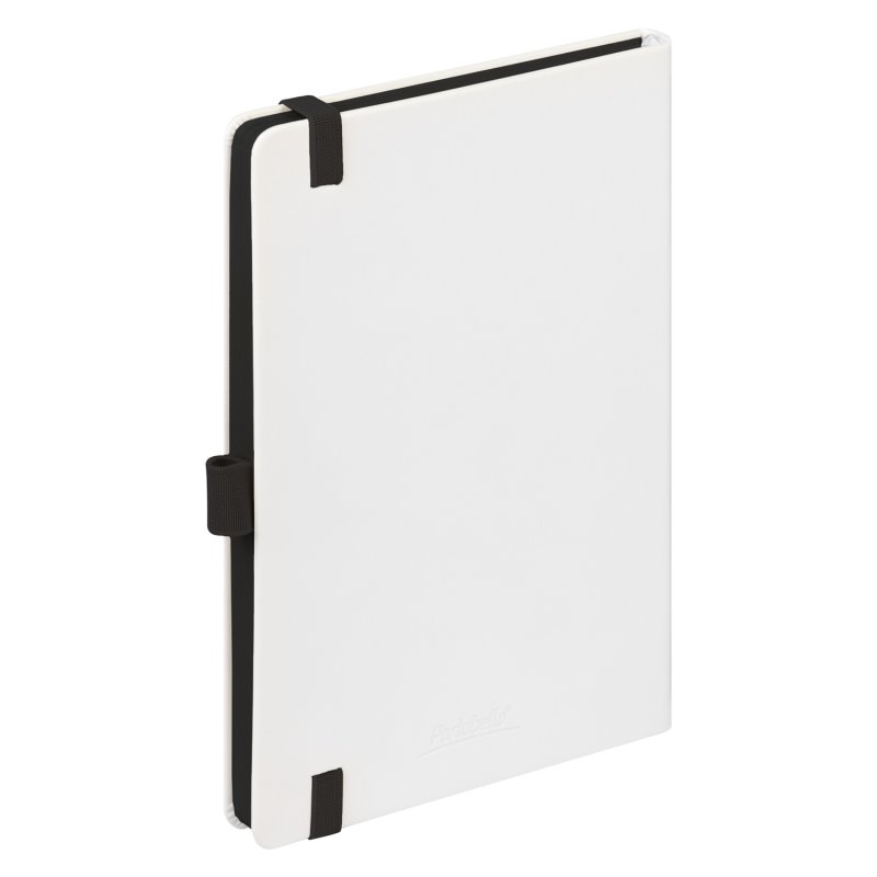 Недатированный ежедневник выполнен в жесткой обложке из искусственной кожи со скругленными уголками. Переплетный материал гладкий, с легкой естественной паутинкой морщин, имеет полуглянцевый блеск. Цвет – чистый белый. Черные матовые форзац и нахзац, а также черный срез блока создают оригинальный динамичный цветовой ансамбль и подчеркивают белизну обложки. Страницы светло-кремового цвета, из гладкого офсета, слегка шелковистые, со скругленными уголками. Добавляют изделию мягкую комфортную теплоту. Двойное атласное ляссе составлено из черной и белой лент. Каждая шириной 6 мм, имеет легкий блеск. Вертикальная фиксирующая резинка прочная, надежная и удобная, в тон срезу. Есть петелька для ручки в тон резинки. Карман на заднем форзаце.