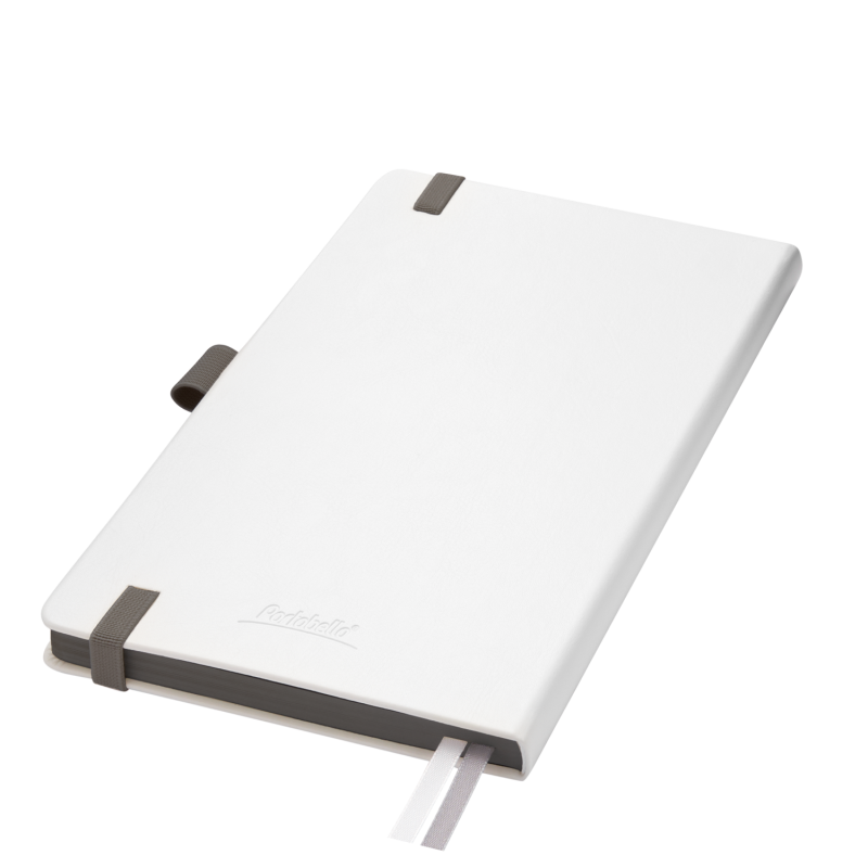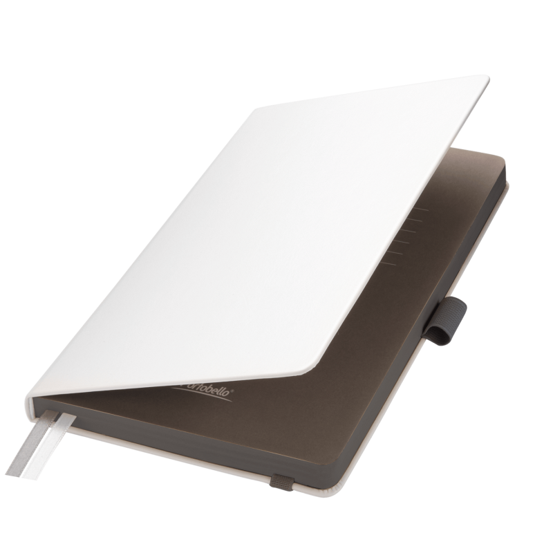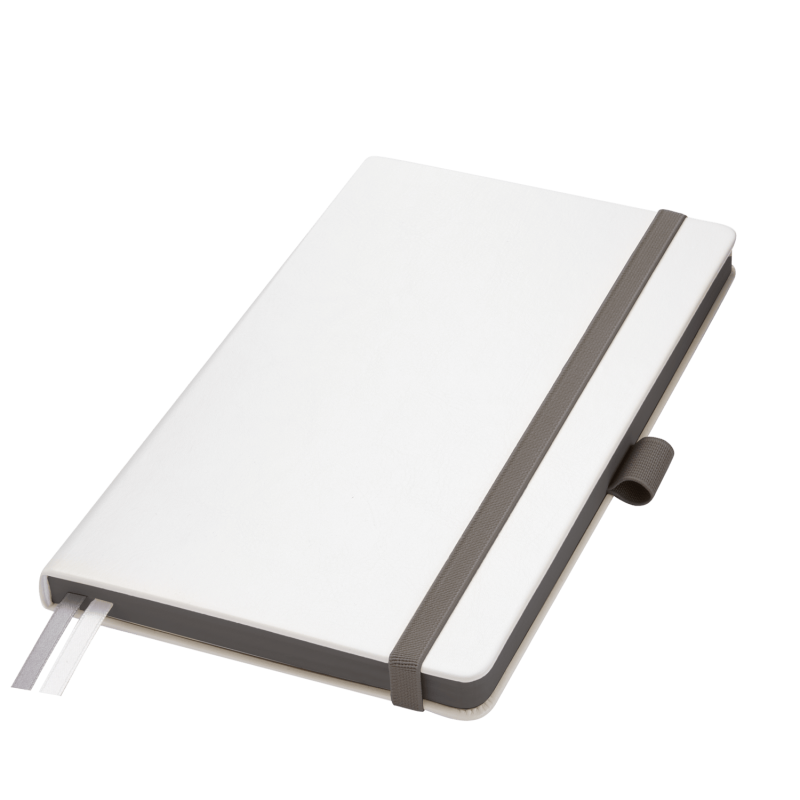 Недатированный ежедневник выполнен в жесткой обложке из искусственной кожи со скругленными уголками. Переплетный материал гладкий, с легкой естественной паутинкой морщин, имеет полуглянцевый блеск. Цвет – чистый белый. Темно-серые матовые форзац и нахзац, а также темно-серый срез блока создают оригинальный динамичный цветовой ансамбль и подчеркивают белизну обложки. Страницы светло-кремового цвета, из гладкого офсета, слегка шелковистые, со скругленными уголками. Добавляют изделию мягкую комфортную теплоту. Двойное атласное ляссе составлено из серой и белой лент. Каждая шириной 6 мм, имеет легкий блеск. Вертикальная фиксирующая резинка прочная, надежная и удобная, в тон срезу. Есть петелька для ручки в тон резинки. Карман на заднем форзаце.