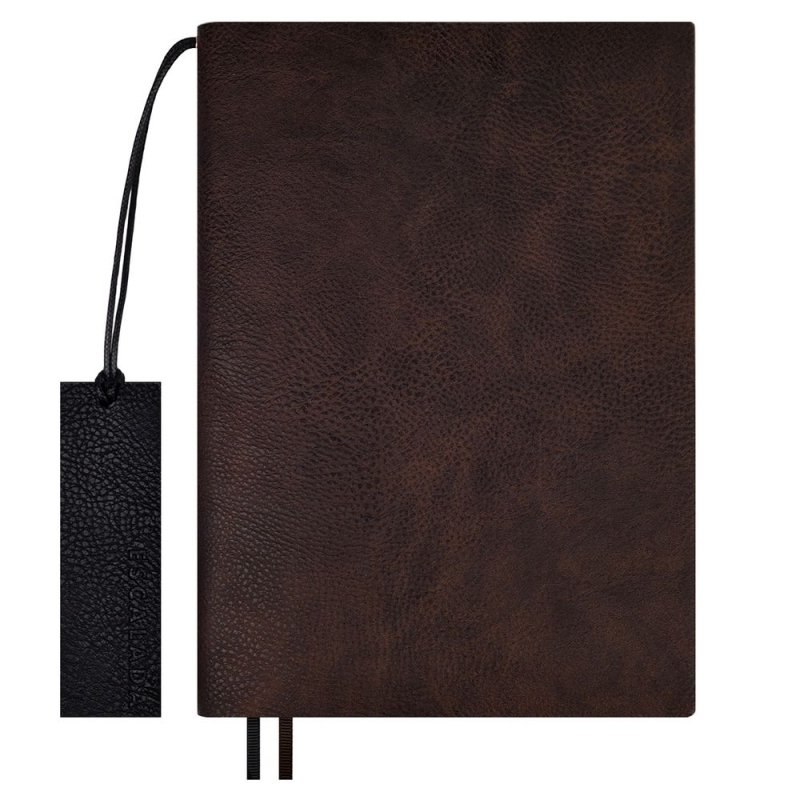 Ежедневник с гибкой обложкой и закладкой из искусственной кожи, дополнен капталом и двойным ляссе.