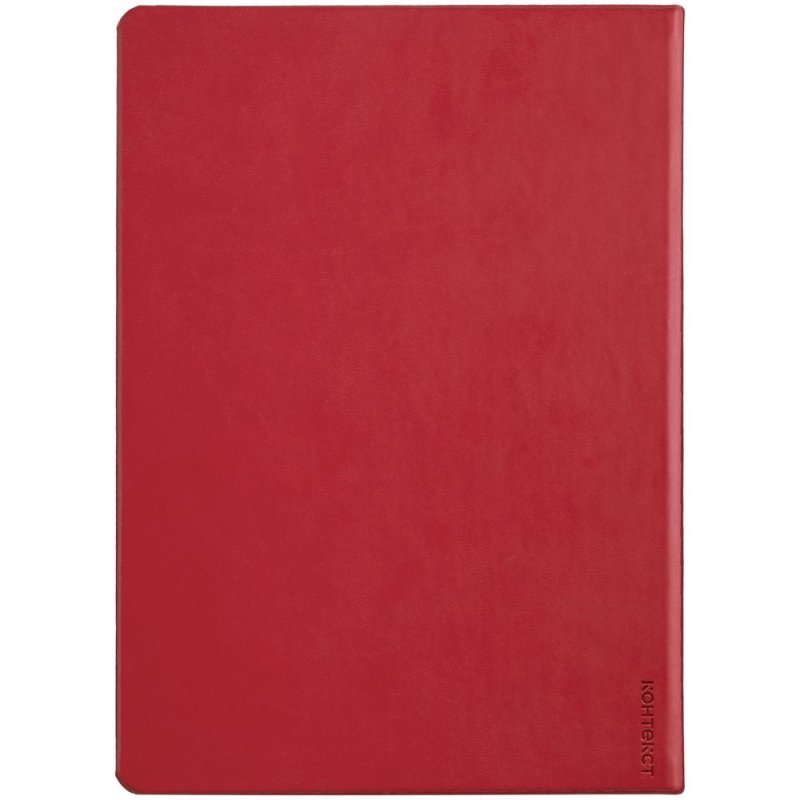 Ежедневник с твердой обложкой, выполнен из материала Latte, красный РР, дополнен ляссе в цвет обложки.