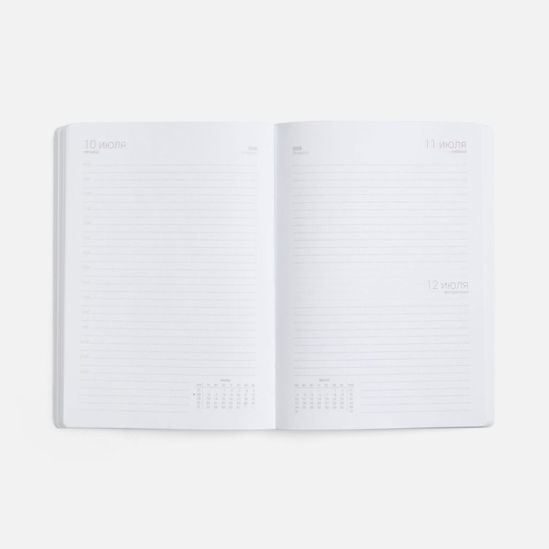 Ежедневник с твердой обложкой, выполнен из материала Latte, темно-серый ЕЕ, дополнен ляссе в цвет обложки.