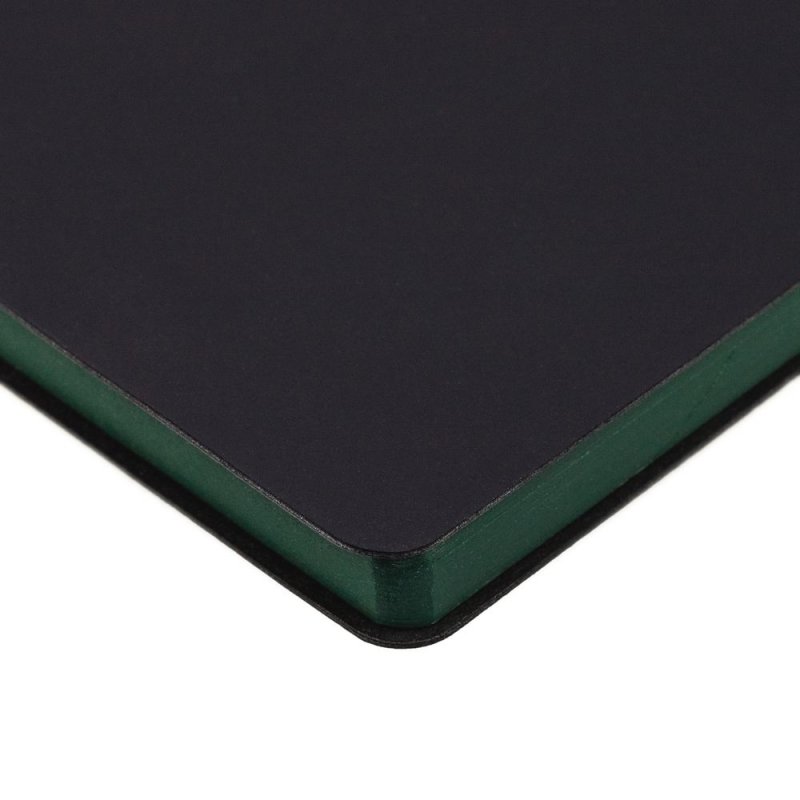 Ежедневник с гибкой обложкой, выполнен из материала Soft Touch, черный АА, дополнен петлей для ручки из материала Nice Touch, зеленый FF и цветным ляссе.
