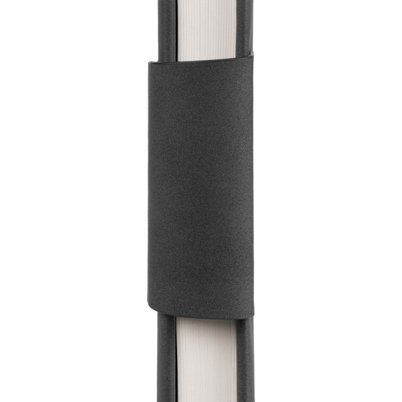 Ежедневник с твердой обложкой c поролоном, выполнен из материала Nubuck, темно-серый ЕЕ, дополнен капталом и ляссе черного цвета. Застежка — магнитный хлястик.