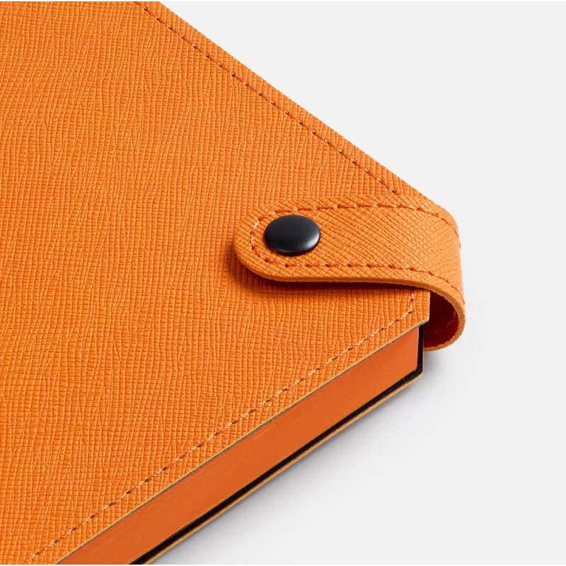 Ежедневник с гибкой обложкой, выполнен из материала Espresso, дополнен ляссе черного цвета и хлястиком на кнопке.