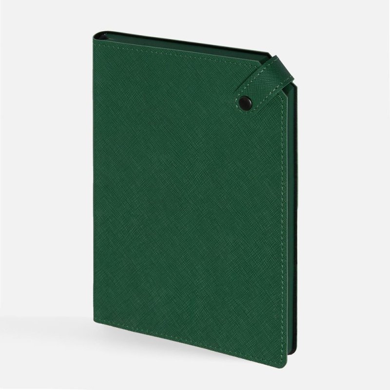 Ежедневник с гибкой обложкой, выполнен из материала Espresso, дополнен ляссе черного цвета и хлястиком на кнопке.