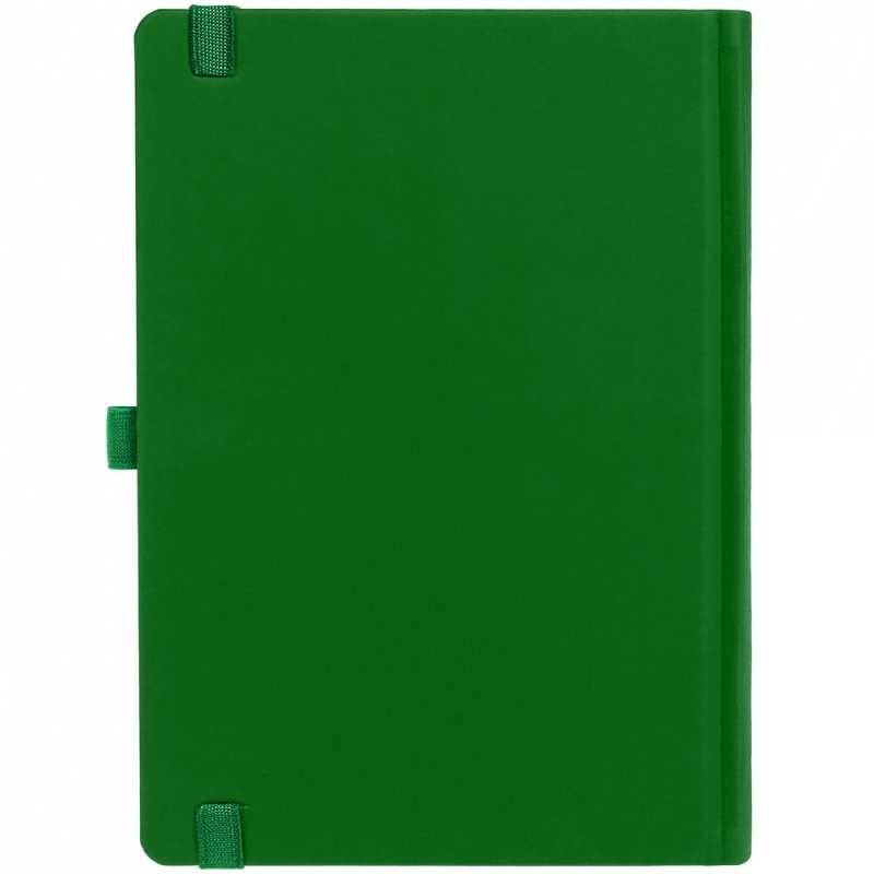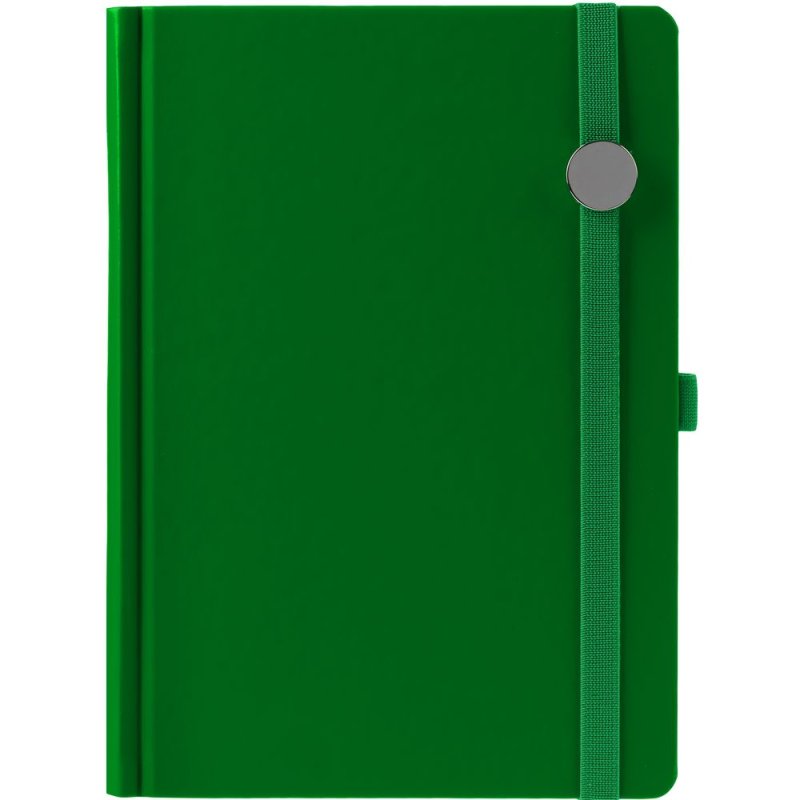 Ежедневник с твердой обложкой без поролона, выполнен из материала Soft Touch Ultra, зеленый FF, дополнен резинкой шириной 1 см, петлей-резинкой для ручки, капталом и ляссе ярко-зеленого цвета.
