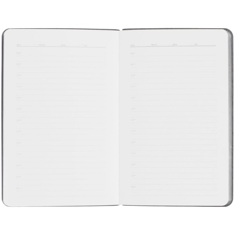 Ежедневник с гибкой обложкой выполнен из материала Soft Touch Pearl, серый СС и серого Latte (внутренняя часть обложки).