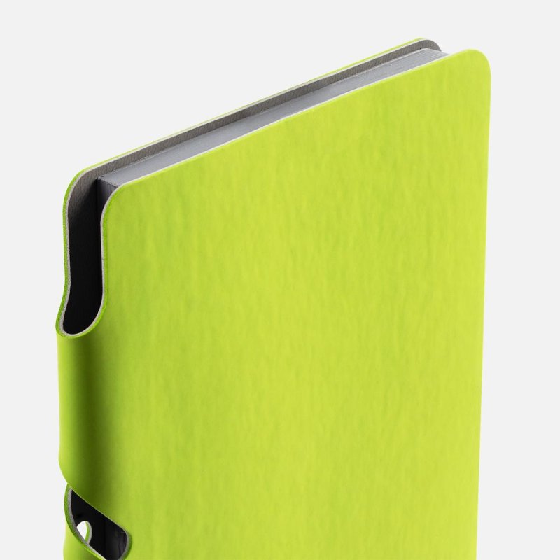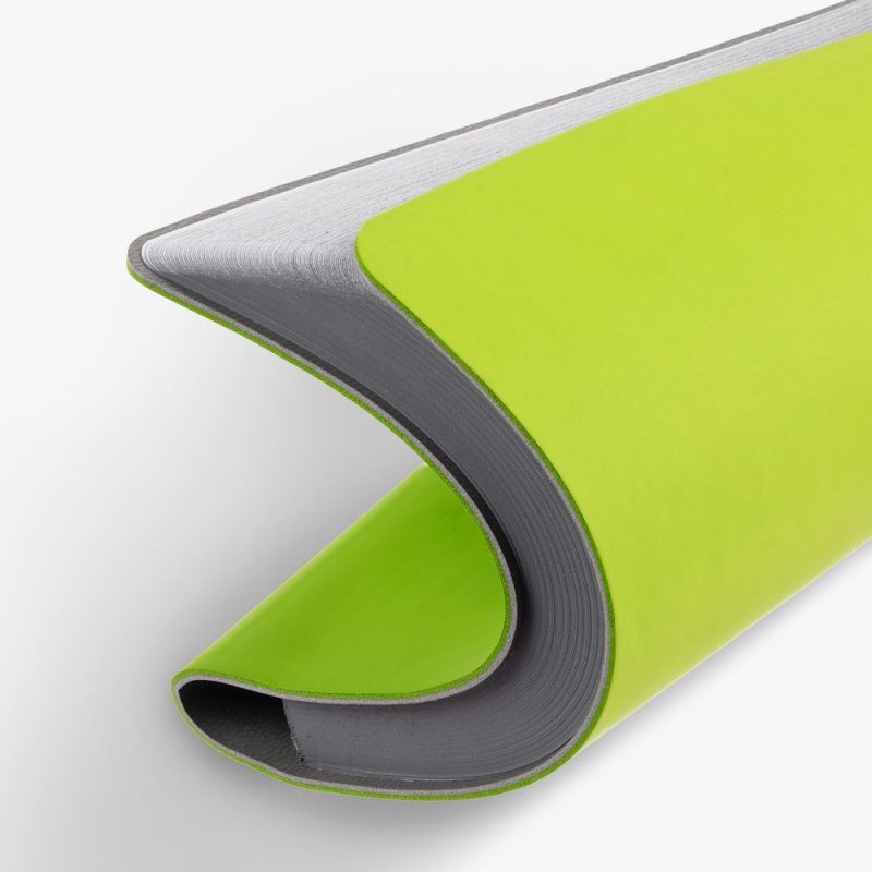 Ежедневник с гибкой обложкой выполнен из материала Soft Touch, светло-зеленый YY и серого Latte (внутренняя часть обложки).
