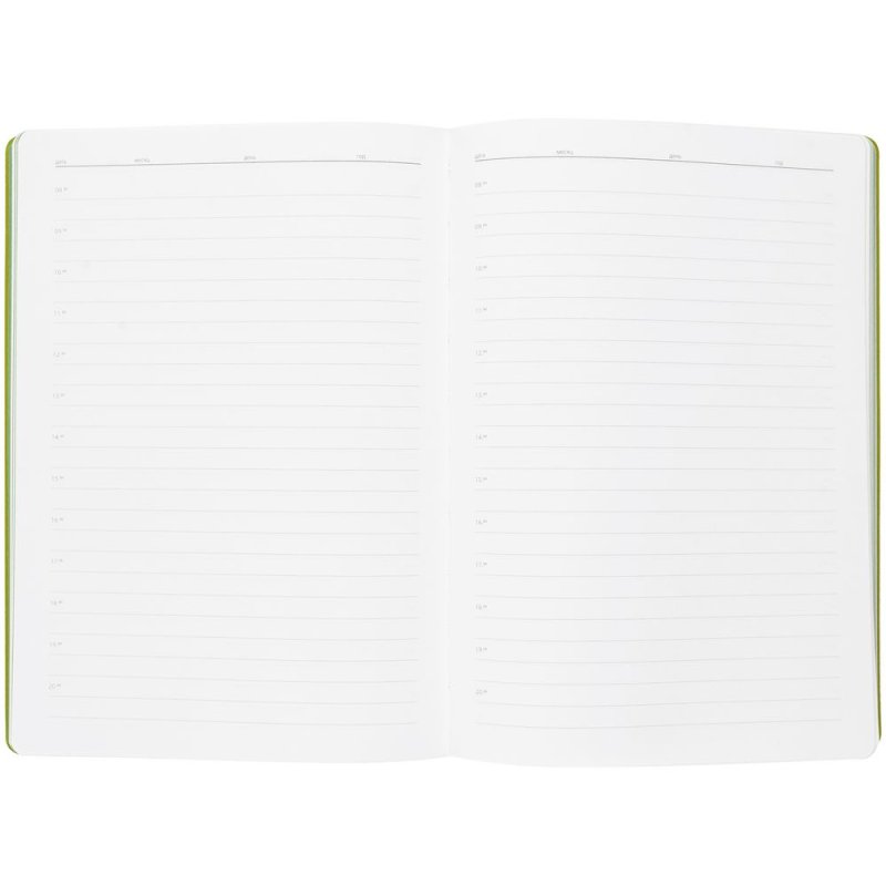 Гибкая обложка выполнена из материала Velour Melange, серый СС и Latte, светло-зеленый (внутренняя часть обложки). Внутри корешка — специальное место для крепления ручки размером до 15х0,9 см.
