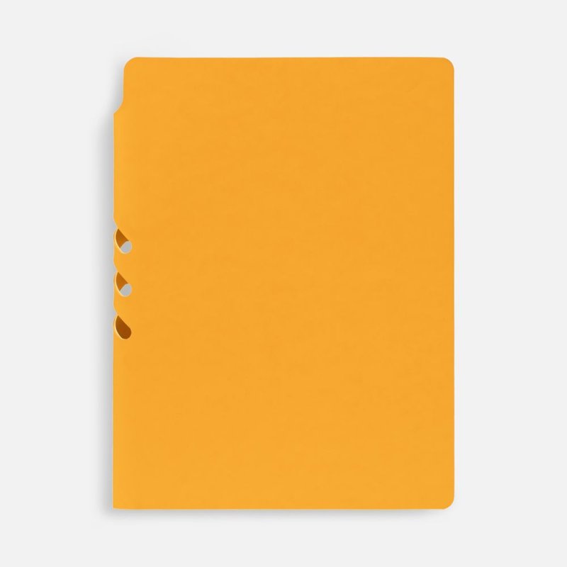 Гибкая обложка выполнена из материала Soft Touch, желтый КК и Latte, желтый КК (внутренняя часть обложки). Внутри корешка — специальное место для крепления ручки размером до 15х1 см.
