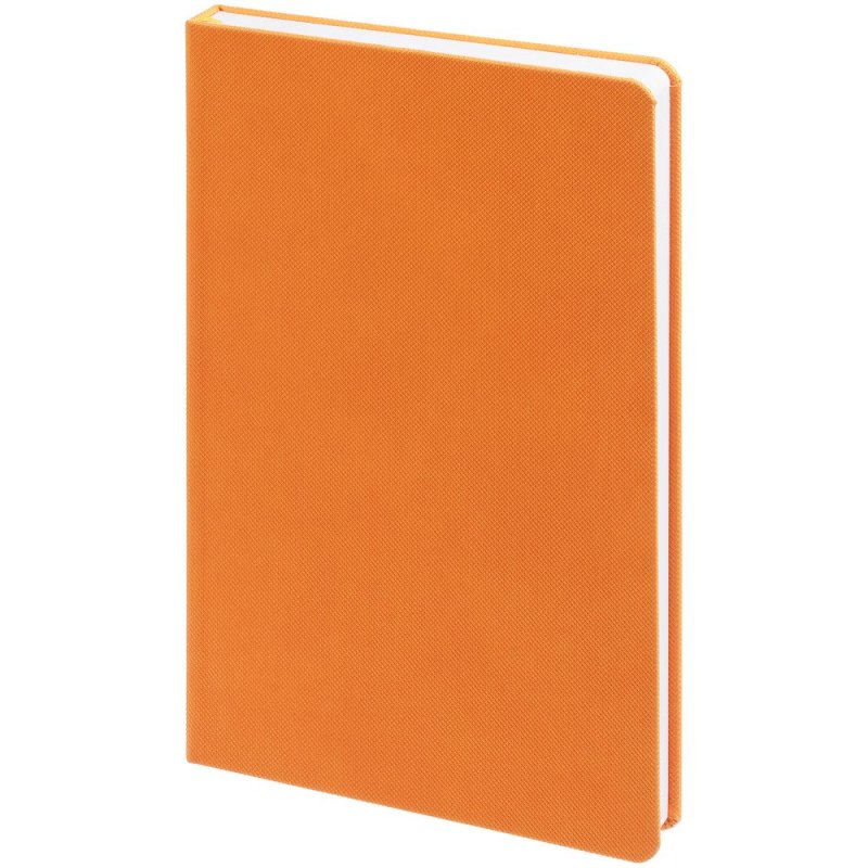 Ежедневник с твердой обложкой, выполнен из материала Canyon, оранжевый ОО, дополнен ляссе в цвет обложки.