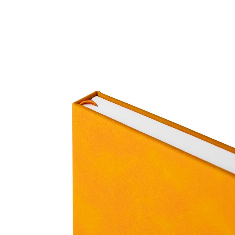 Ежедневник с твердой обложкой, без поролона, со сшивкой материалов Nubuck Touch, серый СС, и Nubuck Touch оранжевый ОО, дополнен двойным ляссе и петлей-резинкой для ручки.