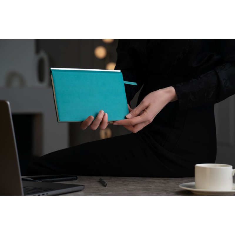 Ежедневник с гибкой обложкой, выполнен из материала Waltz, дополнен металлическим хромированным корешком. Корешек оклеен бирюзовой пленкой для защиты от царапин, снимите ее перед использованием.