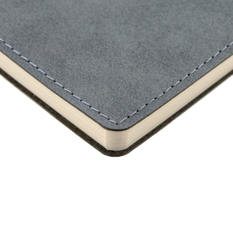 Ежедневник с гибкой обложкой, выполнен из материала Nubuck, темно-серый ЕЕ, дополнен петлей-лейблом для ручки и ляссе в цвет материала.