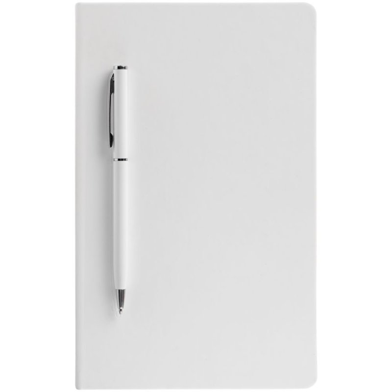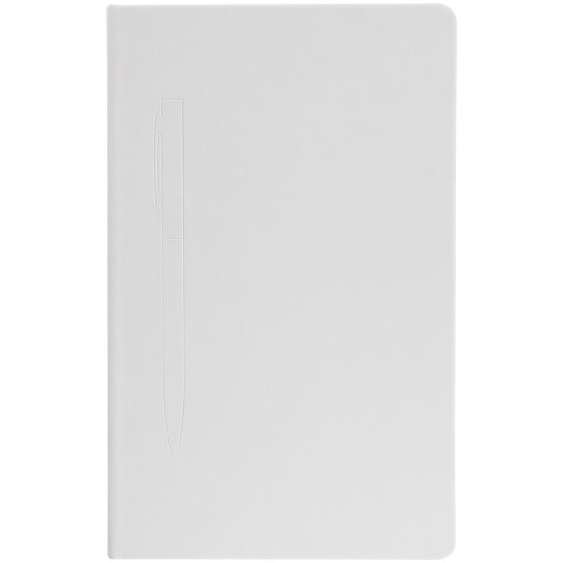 Ежедневник в твердой обложке, выполненной из материала Soft Touch, белый ВВ, дополнен атласным ляссе и магнитом, удерживающим ручку.