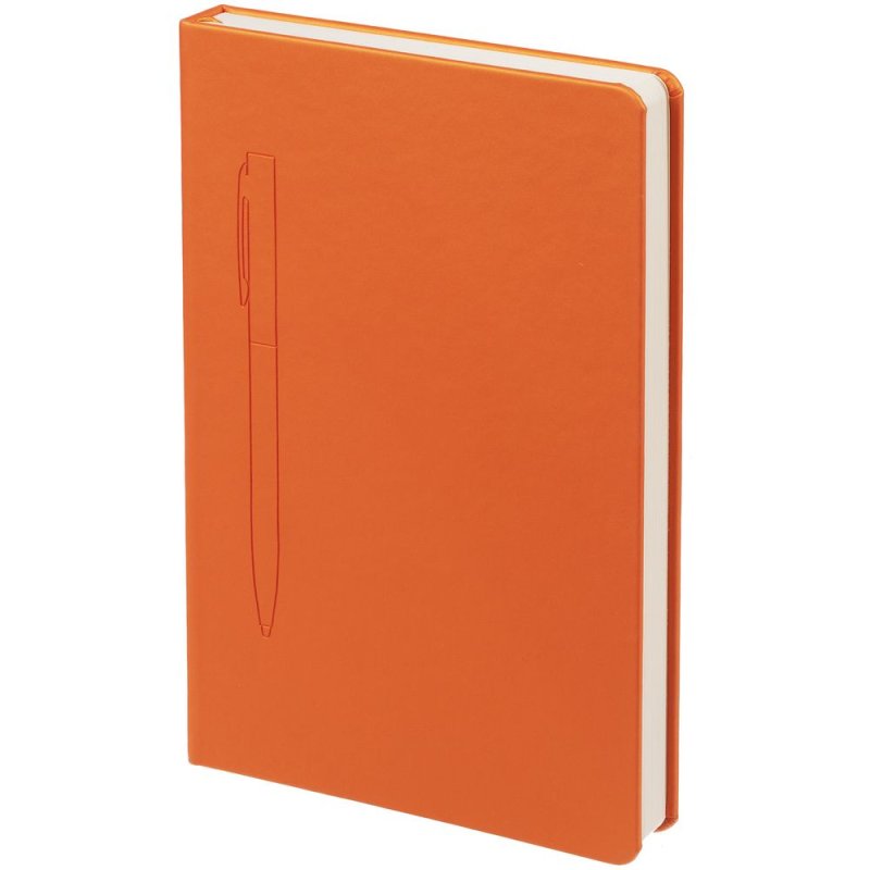 Ежедневник в твердой обложке, выполненной из материала Soft Touch Pearl, оранжевый ОО, дополнен цветным ляссе и магнитом, удерживающим ручку.
