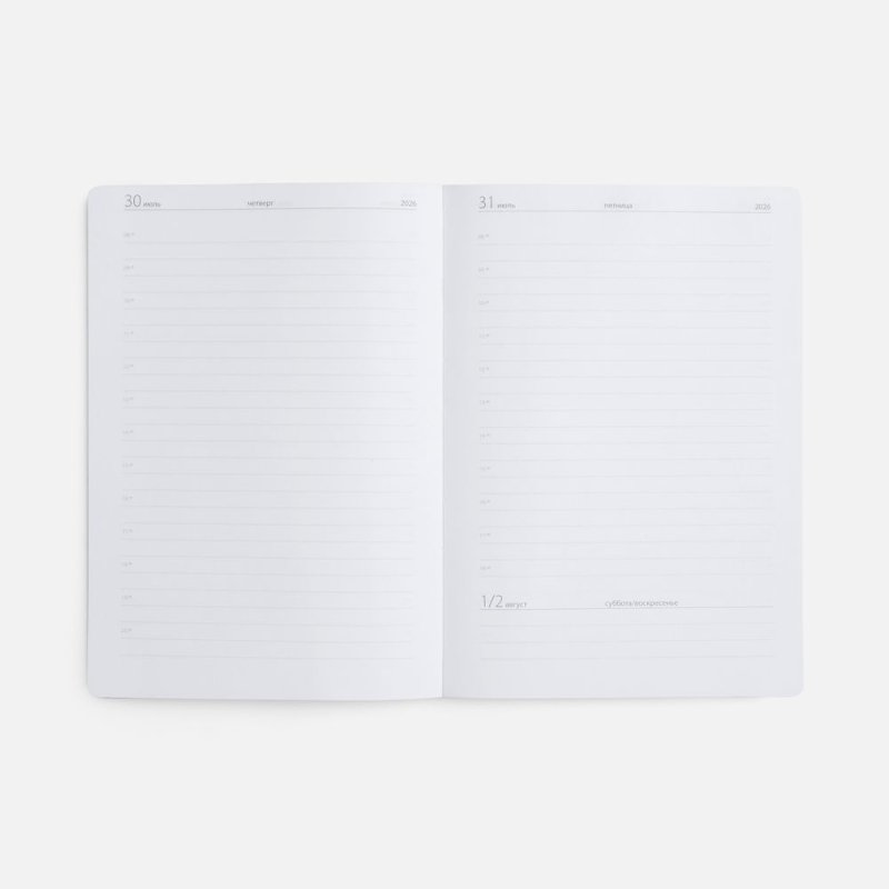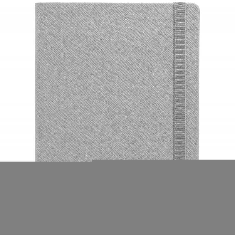 Ежедневник с твердой обложкой выполнен из материала Nice Touch, серый СС, и дополнен резинкой шириной 1 см и ляссе серого цвета.