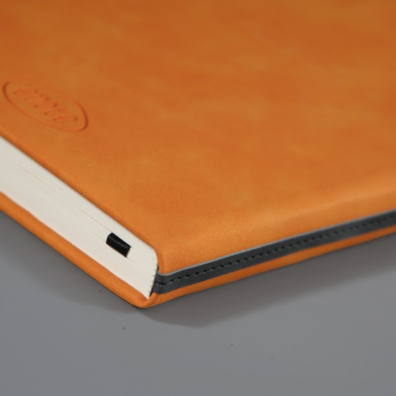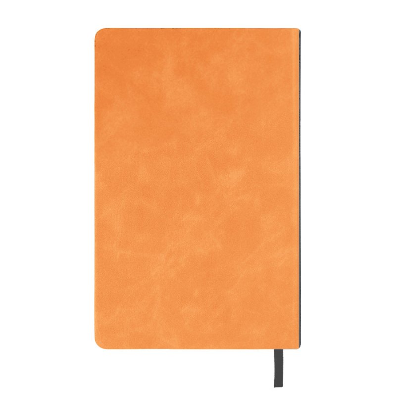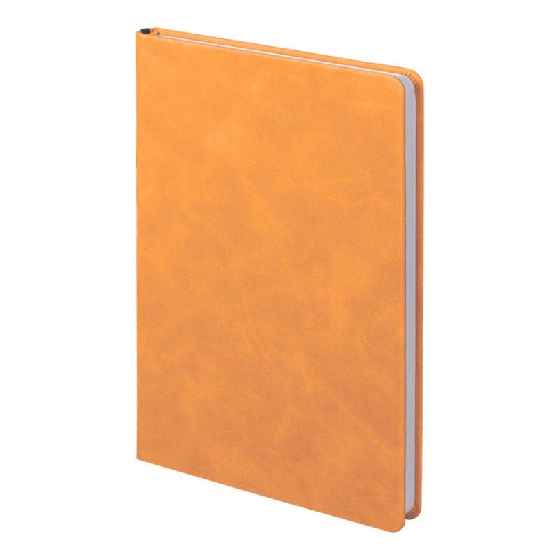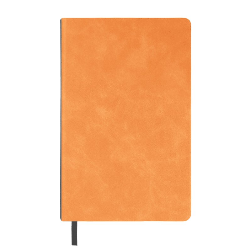 Ежедневник недатированныйMuseЦвет обложки оранжевый, декоративная черная полосаРазмер 130*210 мм, переплет твердыйОбложка термоактивный PU, с эффектом замшиБлок недатированный, в линейку, скругленные углыБумага кремовая, плотность 70 г м2Форзац нахцаз кремовые272 страницыЛяссе, 7 мм,в цвет обложкиУпаковка крафтовый сливбокс