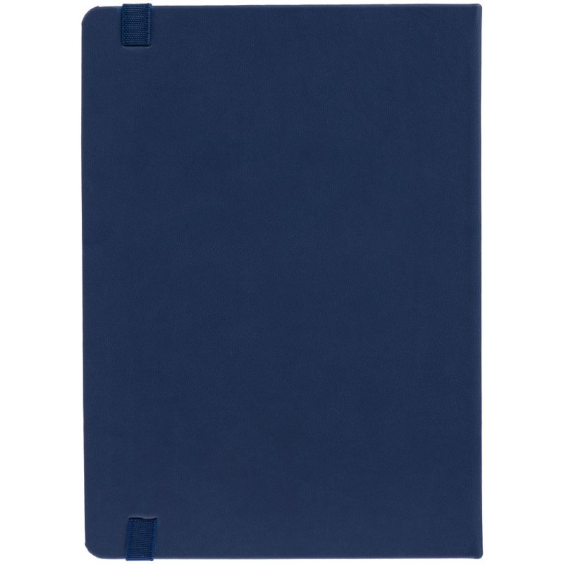 Ежедневник с твердой обложкой, выполнен из материала Latte, темно-синий ХХ, обрез темно-синего цвета, дополнен резинкой и ляссе темно-синего цвета.