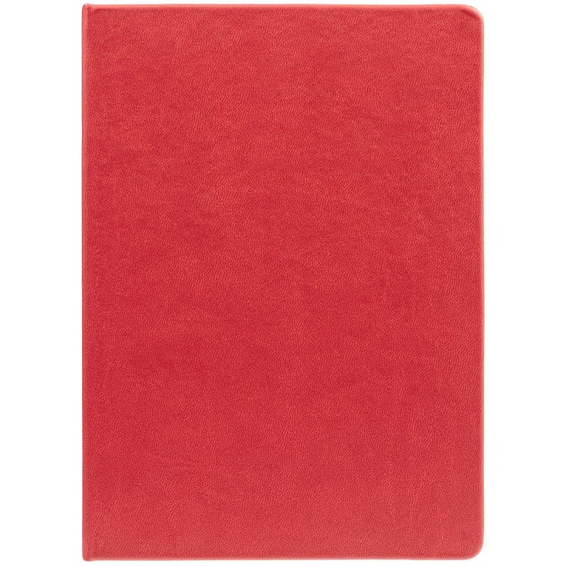 Ежедневник с твердой обложкой. Выполнен из материала Latte, красный, дополнен ляссе в цвет обложки.