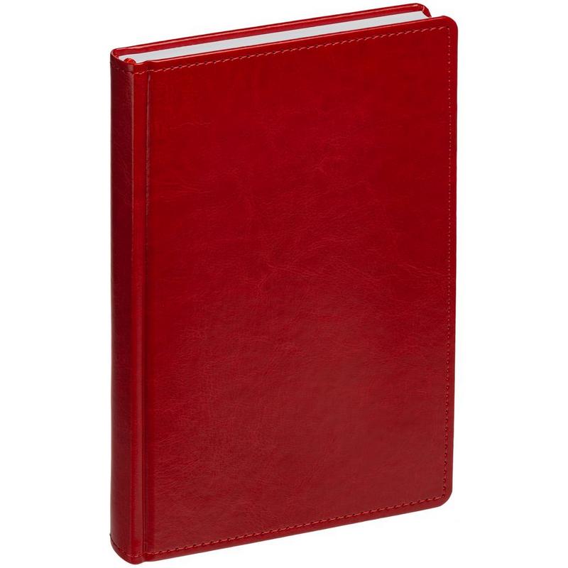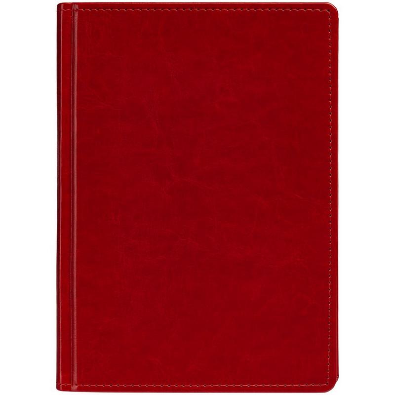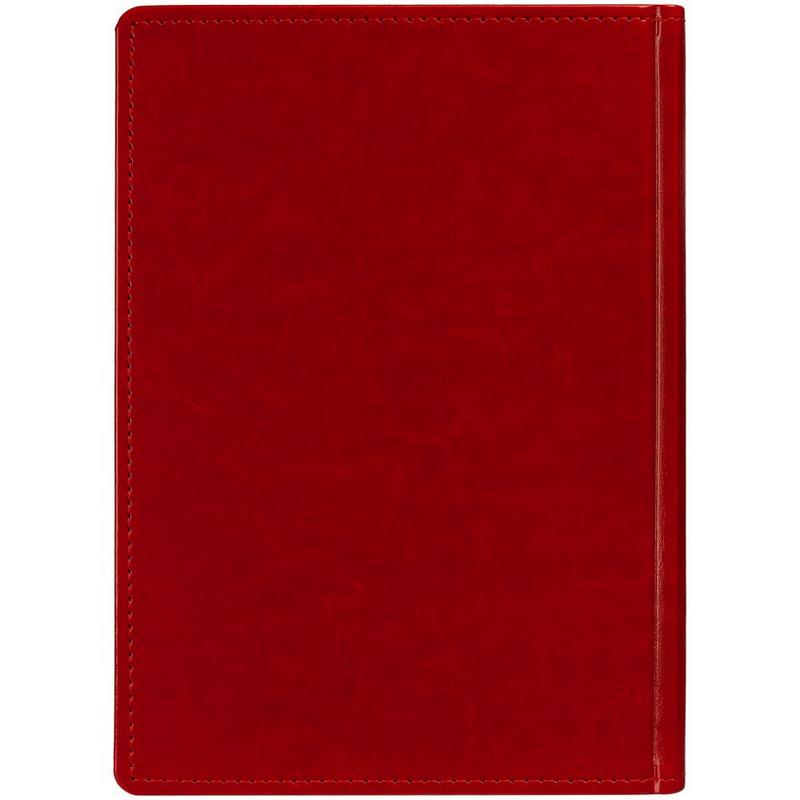 Ежедневник с твердой обложкой без поролона, выполнен из материала Nebraska, красный PP, дополнен ляссе и капталом в цвет обложки.