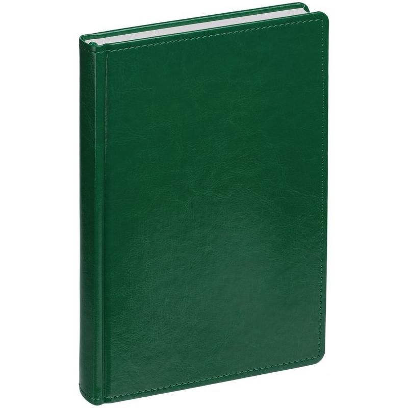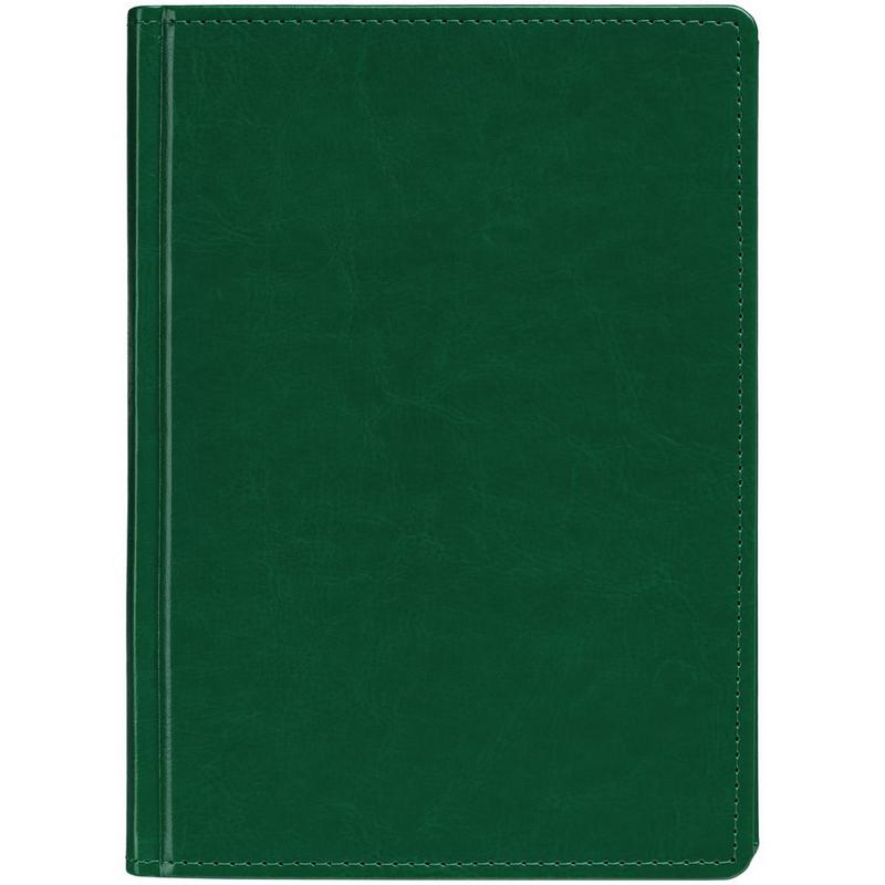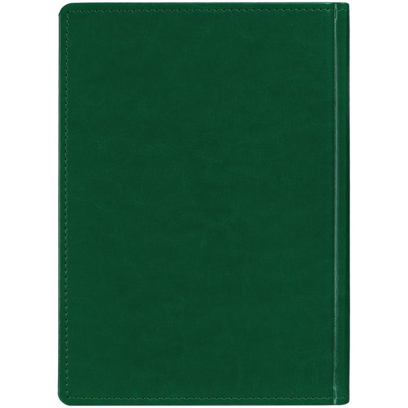 Ежедневник с твердой обложкой без поролона, выполнен из материала Nebraska, зеленый FF, дополнен ляссе и капталом в цвет обложки.