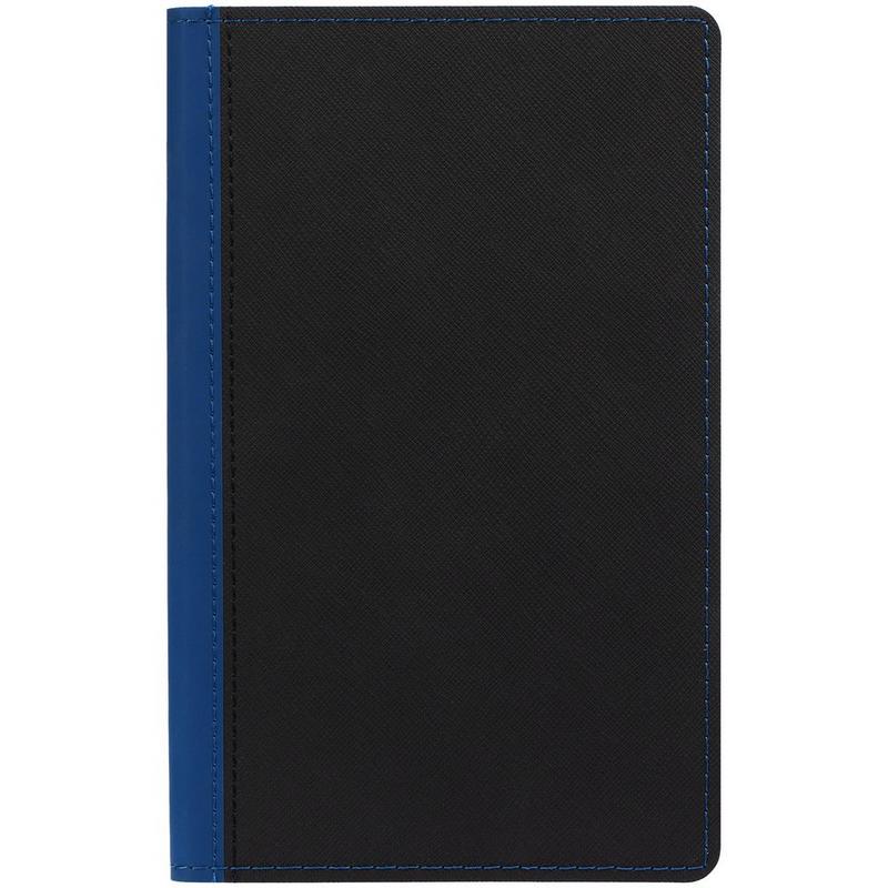 Ежедневник с гибкой обложкой выполнен из материала Nice Touch, черный АА и Soft Touch Ultra, синий НН, дополнен ляссе гсинего цвета.