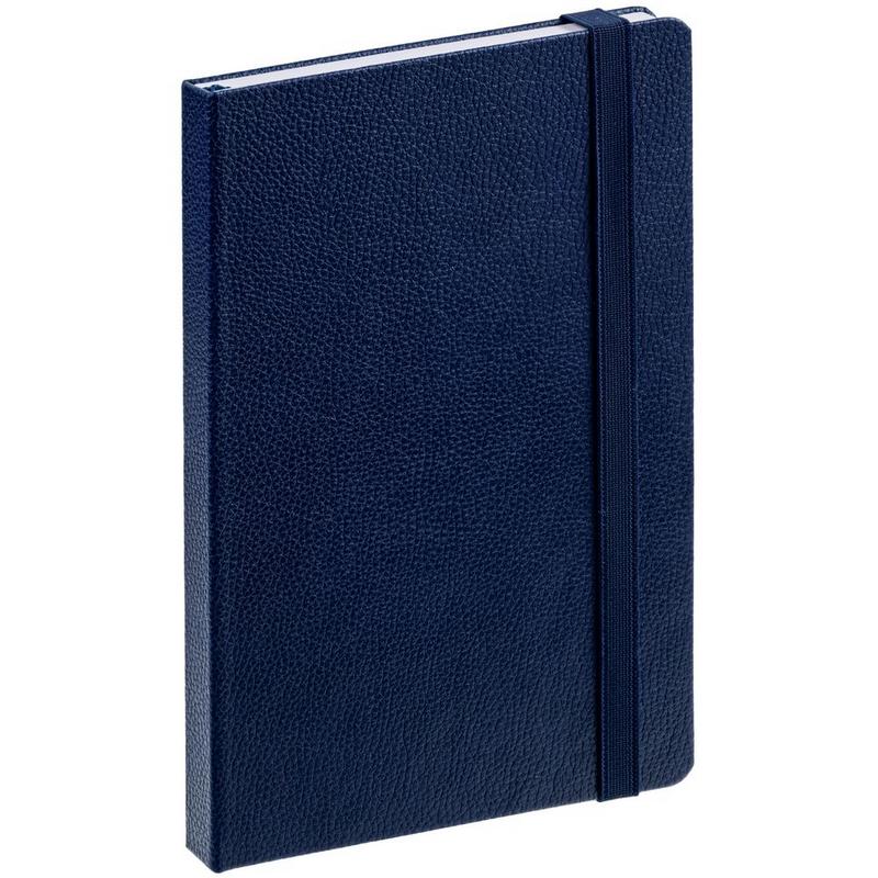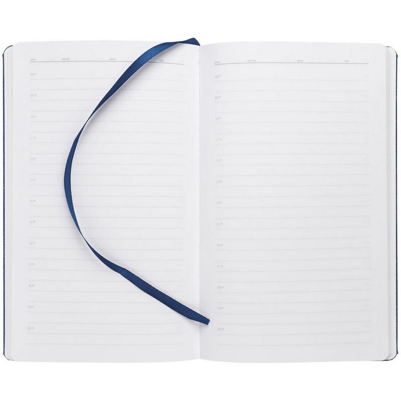 Ежедневник с твердой обложкой, выполнен из материала LaFite, темно-синий ХХ, дополнен резинкой и ляссе в цвет обложки.