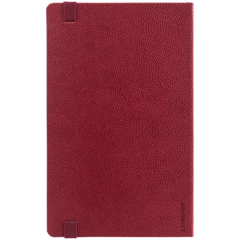 Ежедневник с твердой обложкой, выполнен из материала LaFite, красный РР, дополнен резинкой с металлическим круглым шильдом и ляссе в цвет обложки.