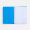 Ежедневник с твердой обложкой, выполнен из материала Nice Touch, голубой JJ, дополнен резинкой с шильдой из материала Soft Touch Ultra и ляссе в цвет обложки.
