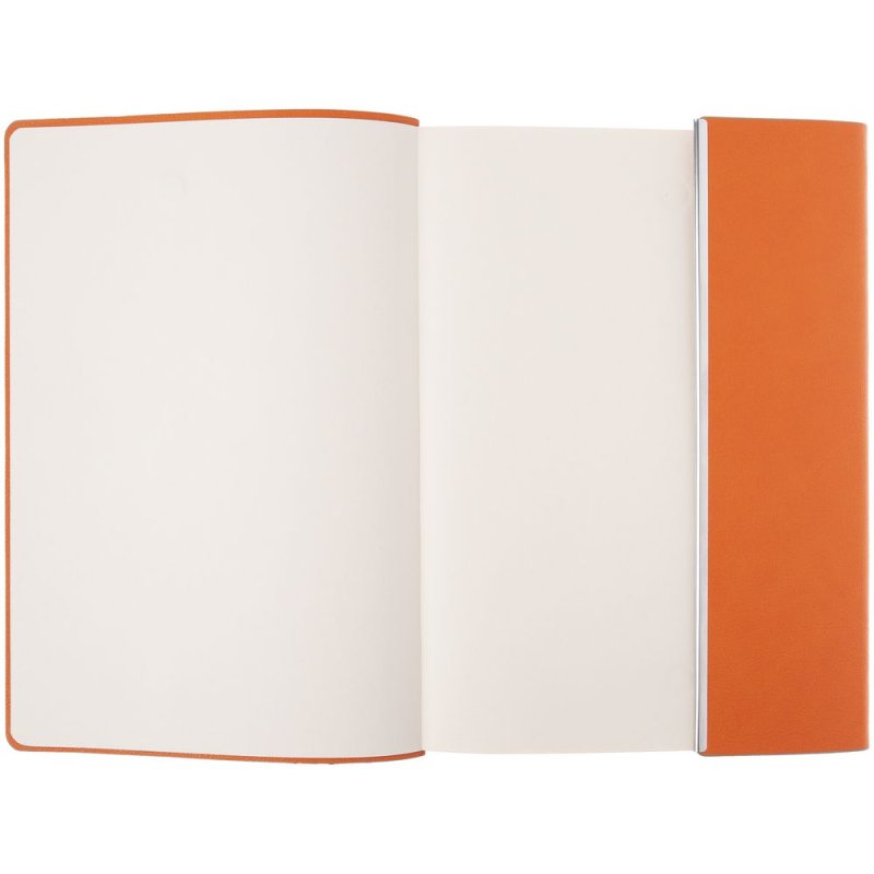 Ежедневник с гибкой обложкой, клапаном на магните и металлической отделкой клапана. Выполнен из материала Petrus, оранжевый ОО, дополнен серым ляссе.