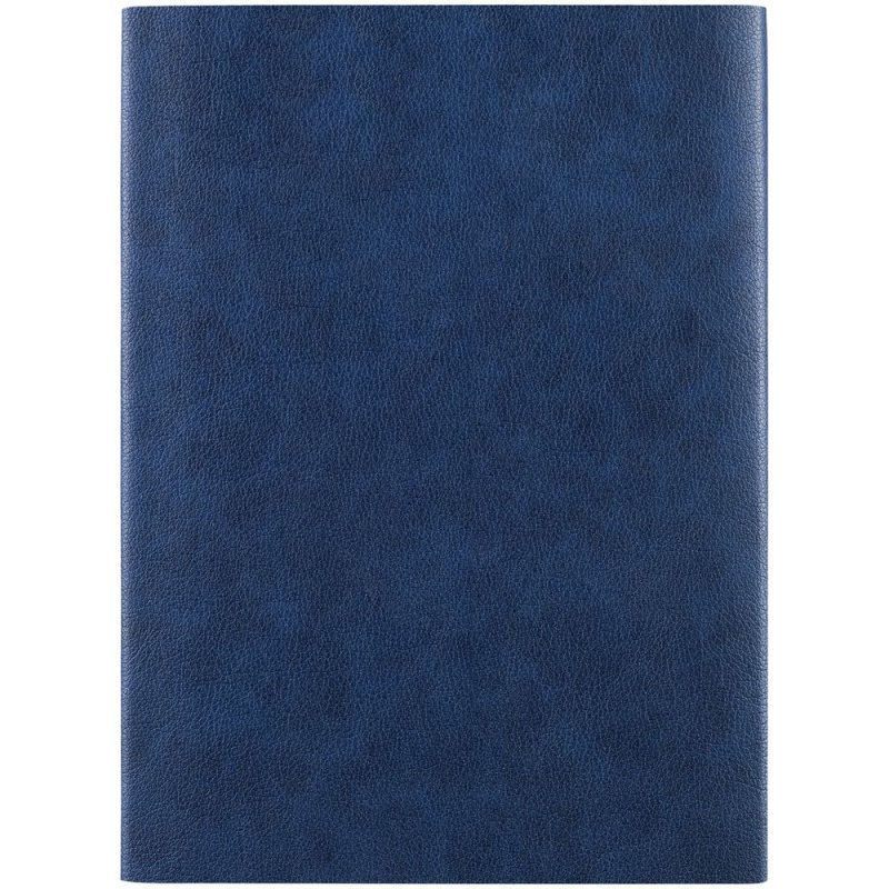 Ежедневник с гибкой обложкой, клапаном на магните и металлической отделкой клапана. Выполнен из материала Petrus, синий НН, дополнен серым ляссе.