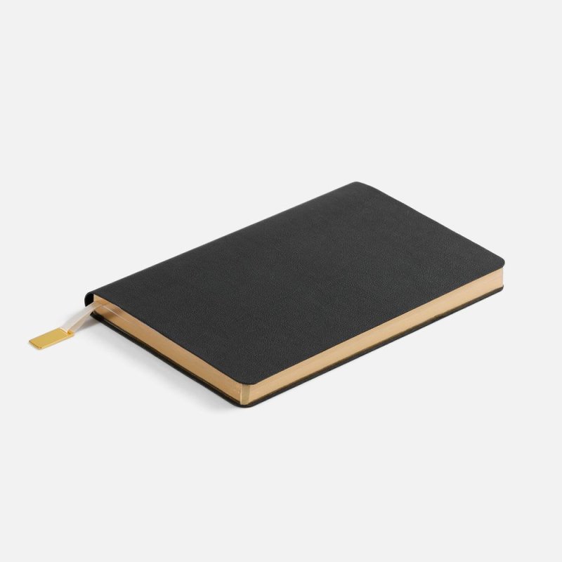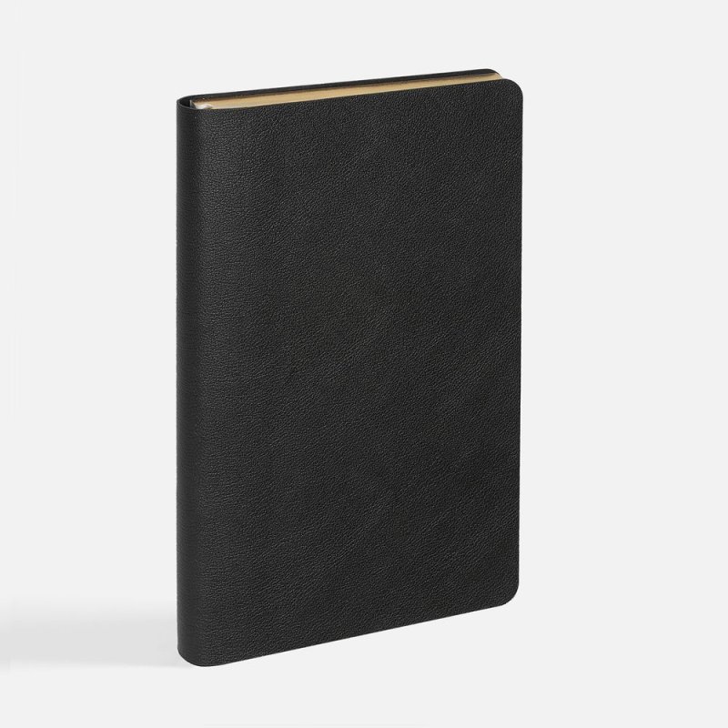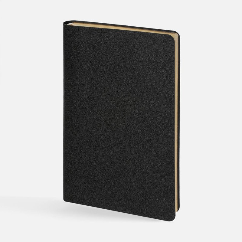 Ежедневник с гибкой обложкой, выполнен из материала Petrus, черный АА, дополнен ляссе с металлическим золотистым шильдиком.