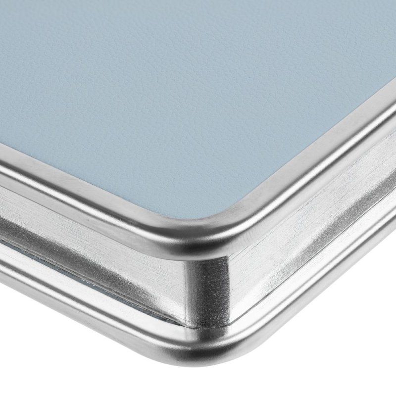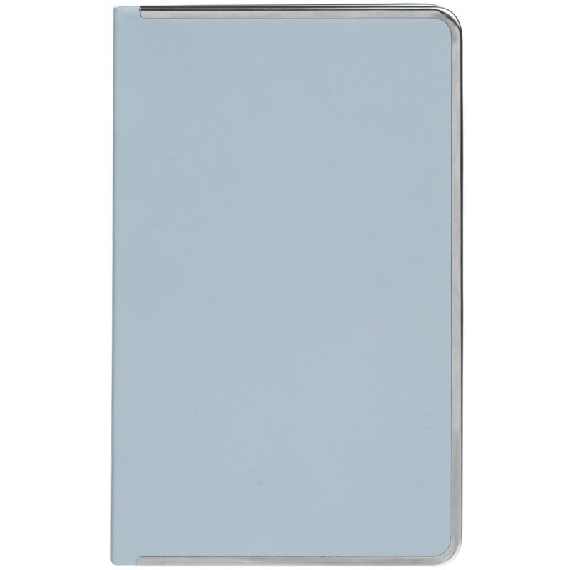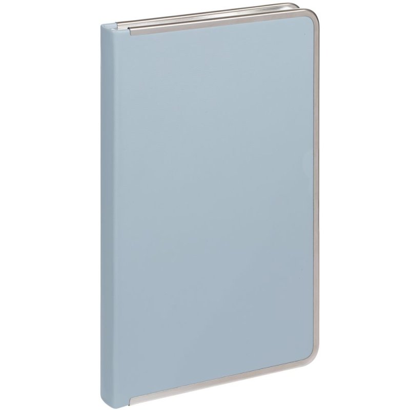 Изящный ежедневник с зауженным блоком и стильными деталями — металлической окантовкой на обложке и металлизированным обрезом.